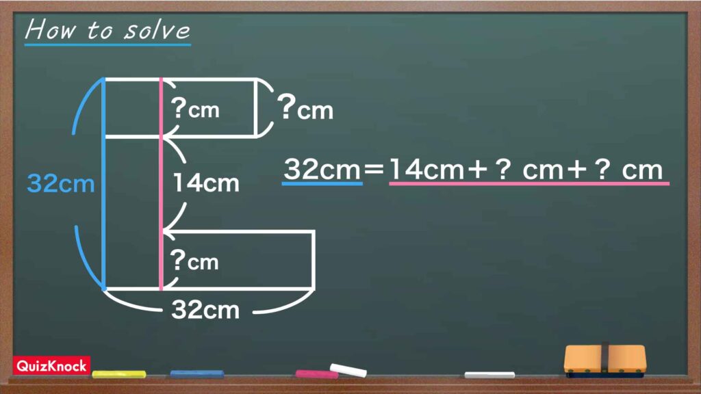 よって、以下の図の青色で示した長さも32cmであることがわかります。