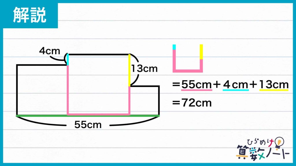 55+4+13=72(cm)と表すことができます。