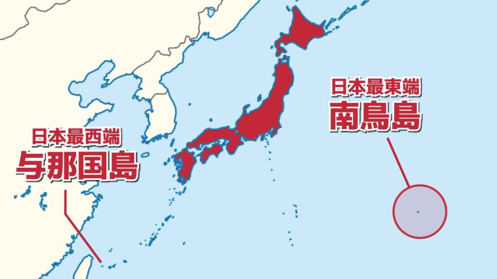 さて、改めて日本について考えると、最東端の南鳥島から最西端の