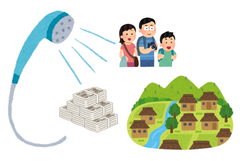 新幹線が開通すると、大都市の恩恵が新幹線の駅から周囲の地方へと広がります。シャワーのように人やお金、情報が降り注ぐイメージです。「交通網が整備されれば、地方も潤う」という、都市計画としてわかりやすい成功結果ですね。たとえば、観光地や特産品がある地域では、アクセスが良くなることで観光客が増え、地域産業が活性化するかもしれません。