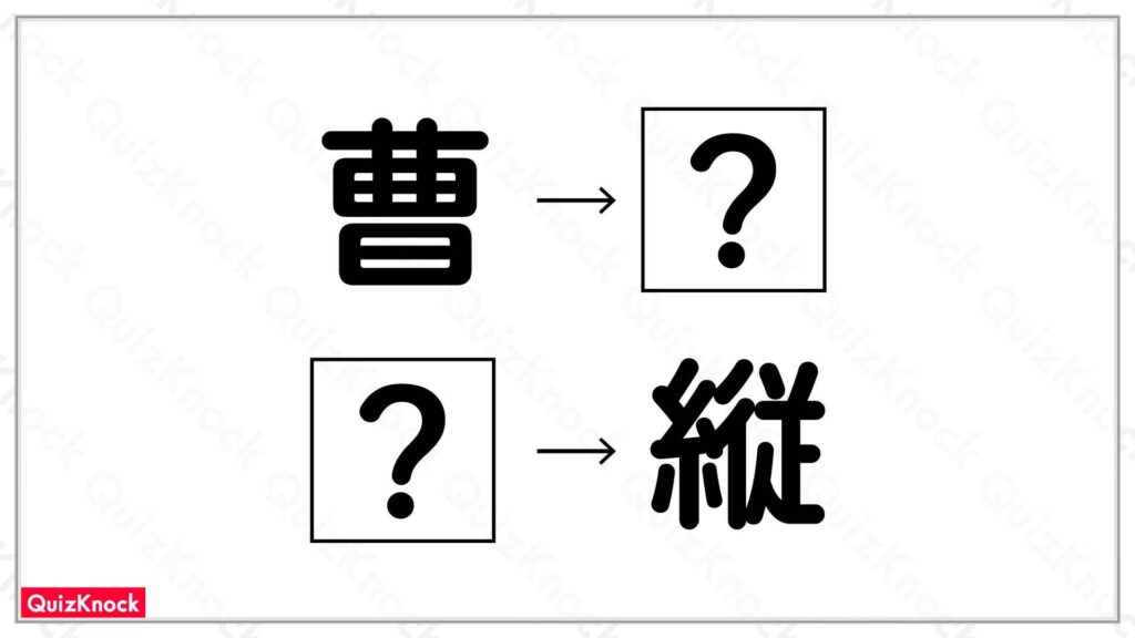設問画像のほか、「曹〇」や「〇縦」などの人名、熟語に使われる字です。