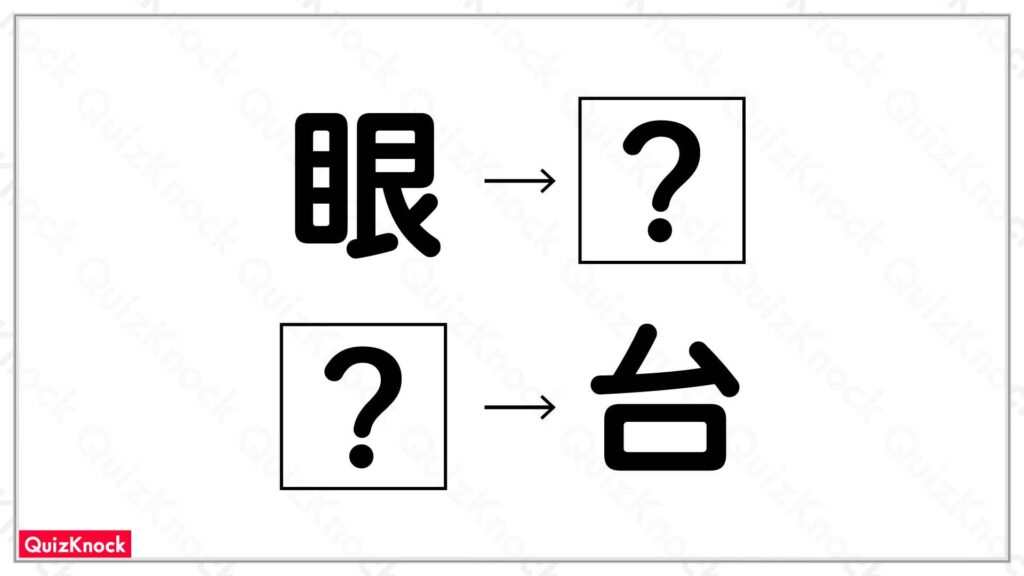 設問画像のほか、「眼〇」「〇台」といった熟語に使われる字です。