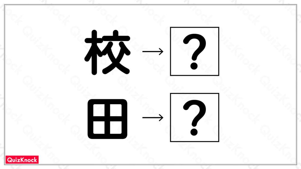 設問画像のほか、「校〇」や「田〇」などの熟語に使われる字です。