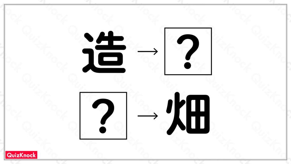 設問画像のほか、「造〇」や「〇畑」などの熟語に使われる字です。