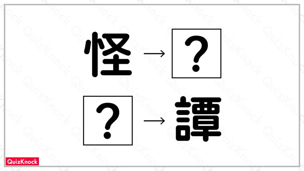 設問画像のほか、「怪〇」や「〇譚(たん)」といった熟語に使われる字です。