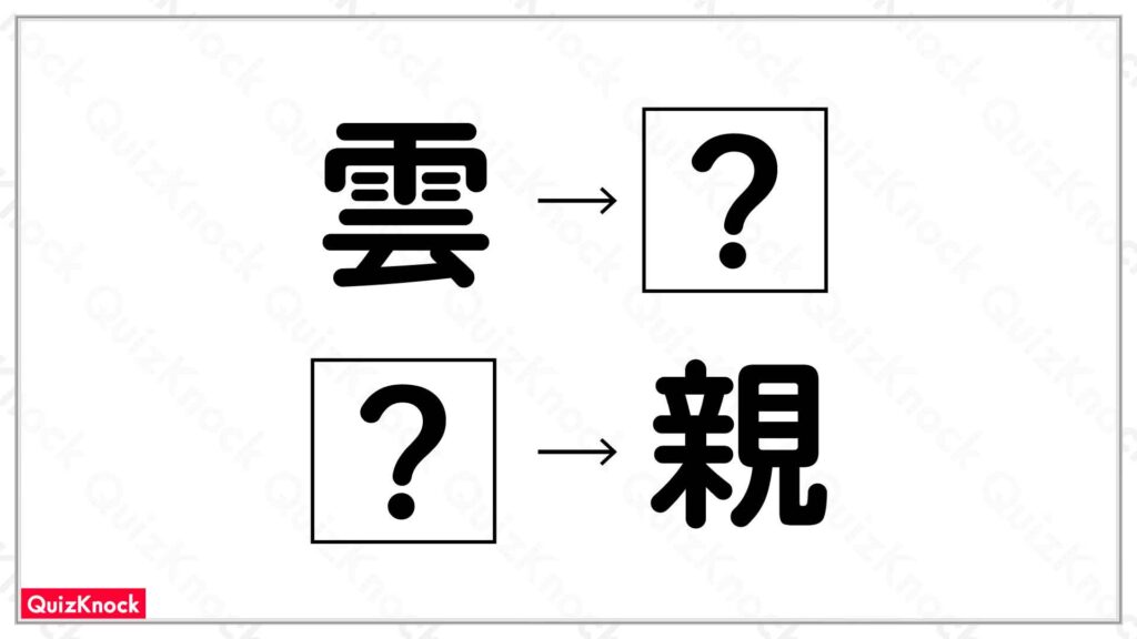 設問画像のほか、「雲〇」や「〇親」などの熟語に使われる字です。