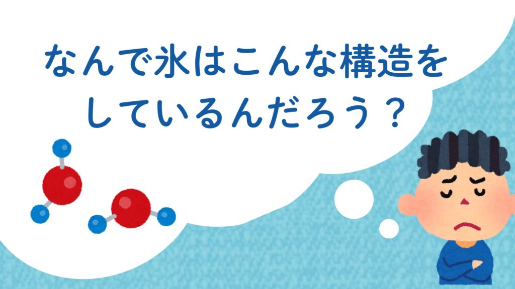 しかし、水の場合は違います。私たちがよく目にする氷の結晶は「スカスカ」な構造をしており、分子の間のすきまは液体のときよりも広いです。このため、水よりも氷の方が体積が大きくなり、密度が小さくなります。