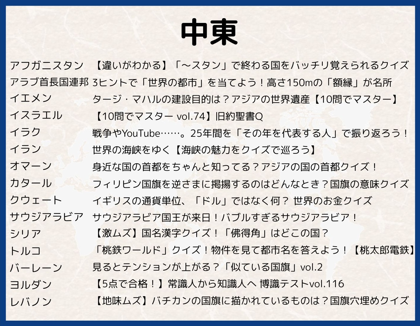 さて、ここからはクイズ記事で出会えた国々を順にチェックしていきましょう。