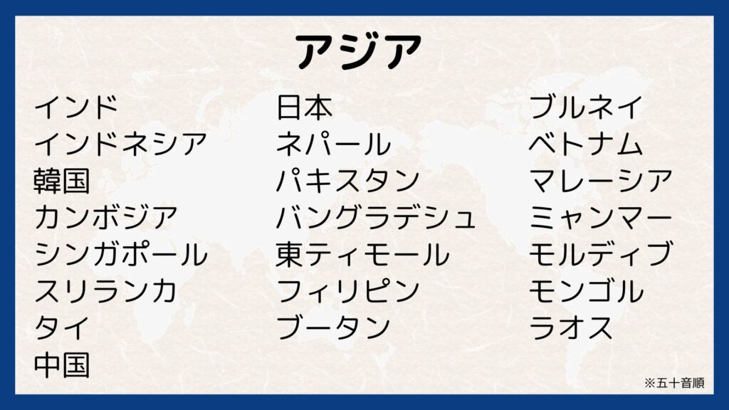 最初に調査に取りかかるのはアジアの国々です。まずは日本に近い国々から進めていきましょう。