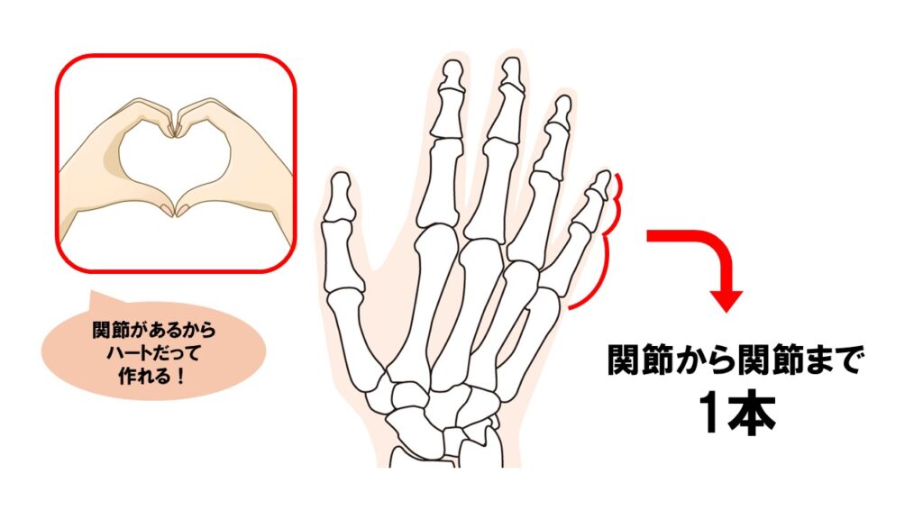 このように、ヒトの身体は基本的に関節から関節まで骨1本で構成されています。支えるにはそれで十分ですし、当たり前といえば当たり前ですよね。